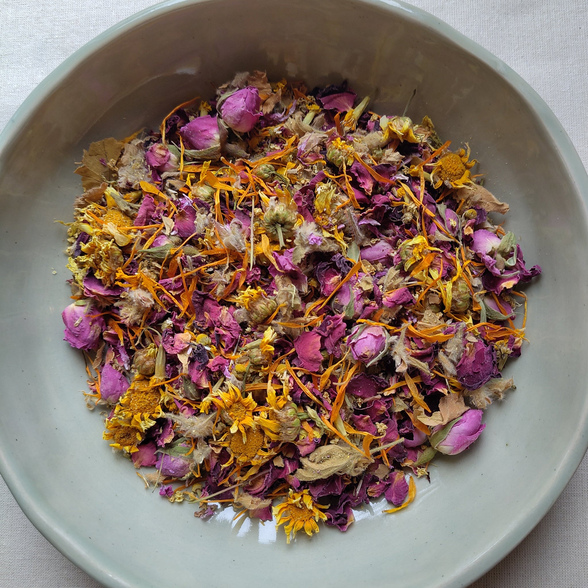 Bevat: kamille, goudsbloem, rozenblaadjes, rozenknoppen, vlierbloesem, shungiku, citrusafrikaantje
