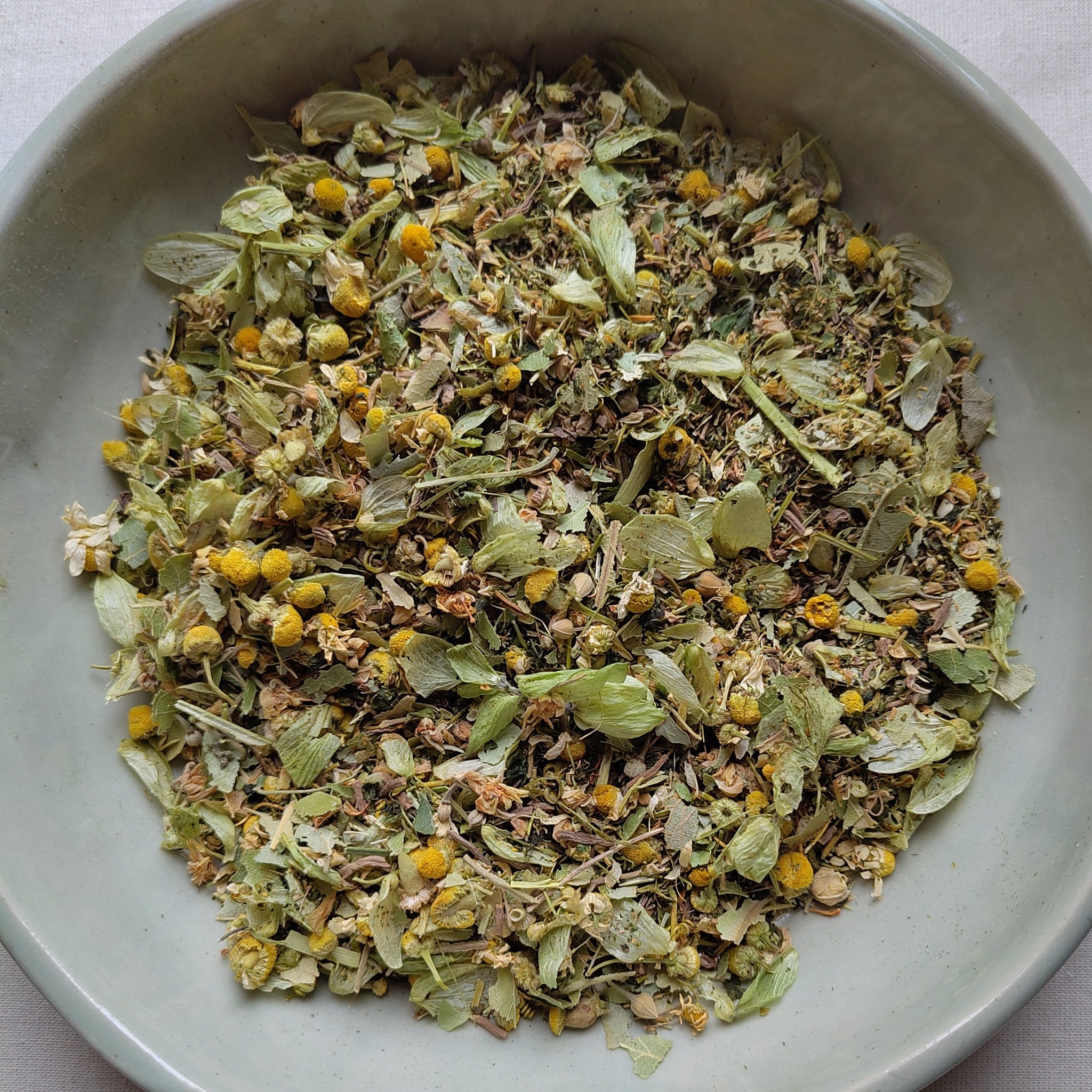 Een ideale kruiden en bloemeninfusie om zalig in te slapen, rust te bieden, met hop om door te slapen.